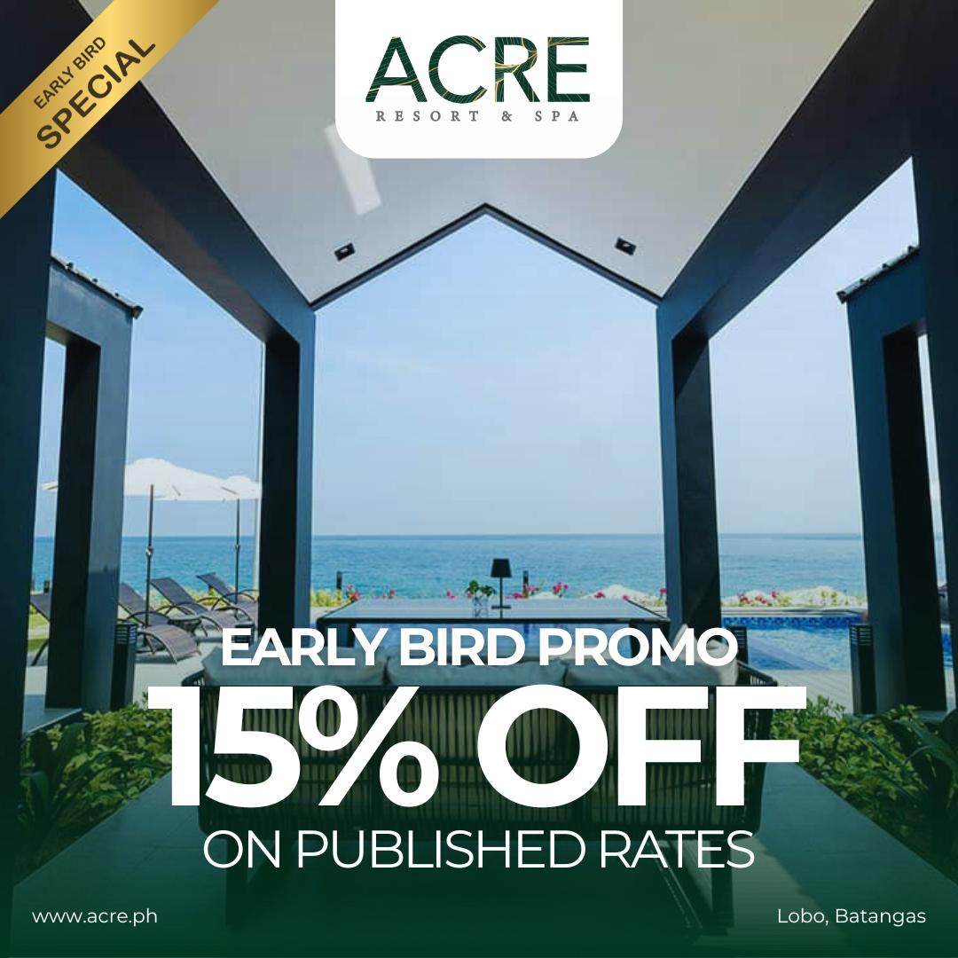 Acre Resort & Spa is located in Lobo, Batangas. The resort offers well-appointed rooms with premium lifestyle amenities and world-class services, making it a highly preferred destination for couples, families, and friends. Set amidst lush landscapes with stunning sea views, Acre Resort & Spa provides a serene escape where luxury blends with nature.